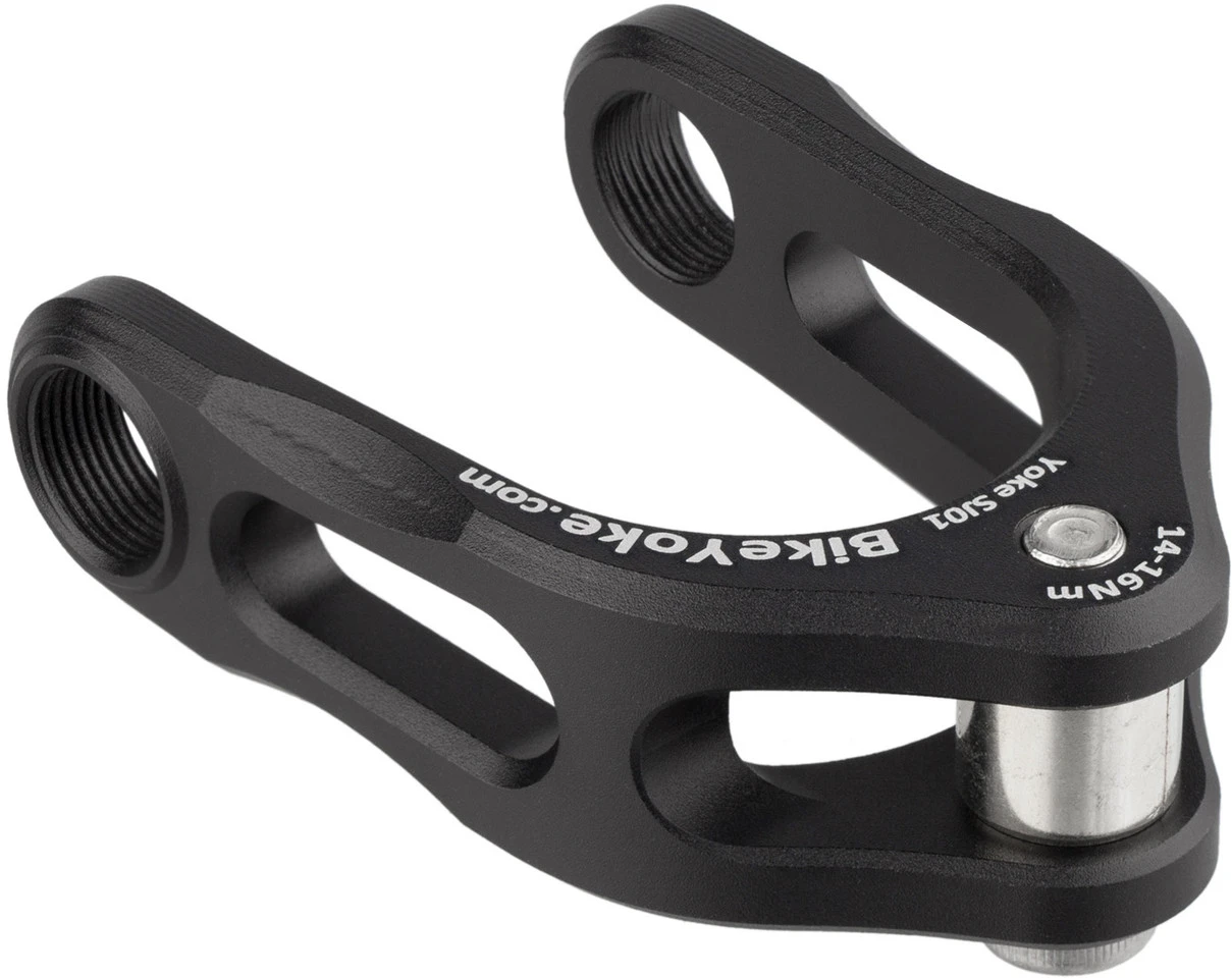 BikeYoke ist eine clevere Dämpferverlängerung, die es Dir ermöglicht, in Deinem Specialized anstatt der Standard Specialized Dämpfer, Dämpfer verschiedenster Hersteller mit 12,7 mm Dämpferaugen zu verwenden. Es ersetzt einfach das originale “ Clevis“ von Specialized. Die Befestigungsteile zur Anbindung an den Hinterbau können von der originalen Version weiter verwendet werden.