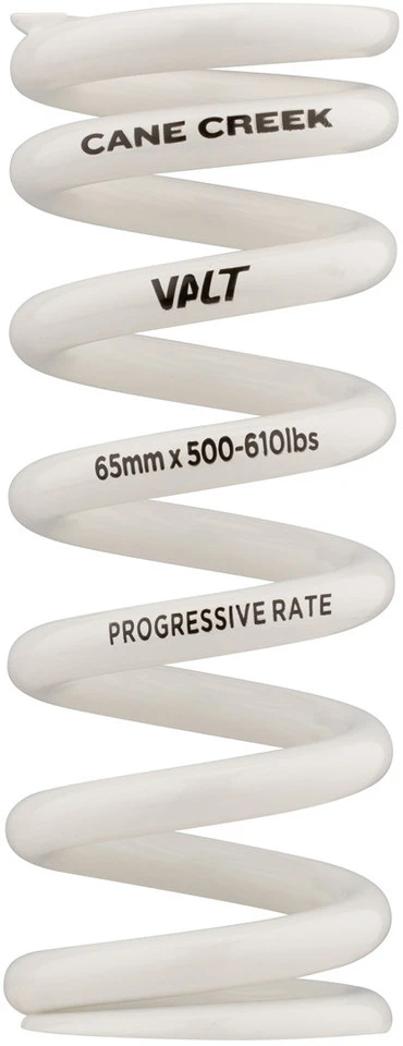 Federlänge:141 mmHub:65 mmFederrate:500 – 610 lbsHerstellernummer:AAD2427Lieferumfang:1 x Stahlfeder Cane Creek Progressive VALT Lightweight