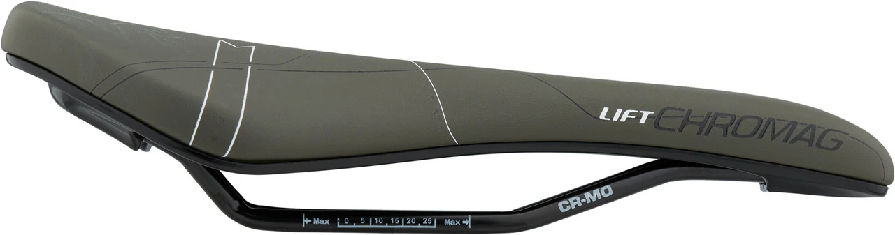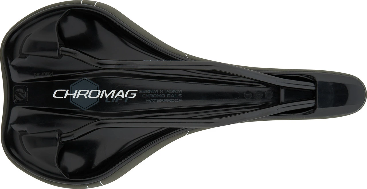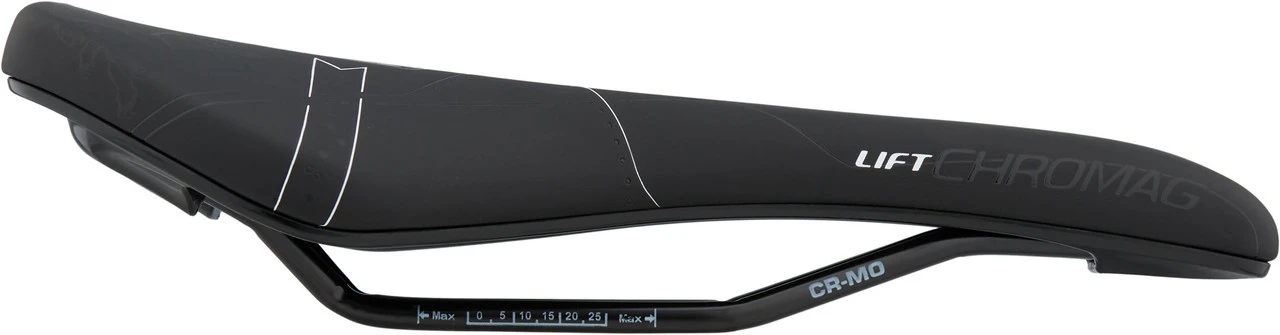 Der Lift Sattel von Chromag hat eine in die Länge gezogene Sitzfläche und eine große Vertiefung in der Mitte, damit der Druck besser verteilt wird und empfindliche Stellen weniger direkt aufliegen.