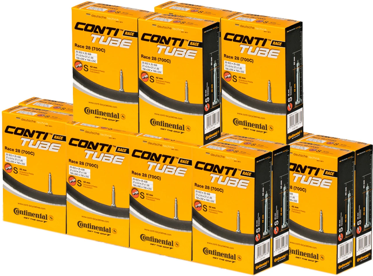 Bezeichnungen/Synonyme: Sclaverand-Ventil (SV), Französisches Ventil, Presta-VentilAußendurchmesser: 6,5 mmSonstiges: Bei allen Continental-Schläuchen mit SV-Ventil ist das Ventil abschraubbar (Ventilverlängerung, Befüllen mit Antiplatt-Mitteln etc.).Lieferumfang:20 x Schlauch Continental Race 28