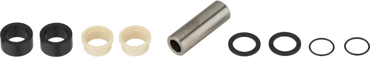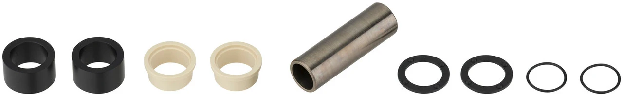 Im 7-teiligen Einbaubuchsenset von Fox Racing Shox mit 8 mm Bohrung findest Du neben einer Hülse aus Edelstahl alles für die Montage Deines Dämpfers. Außerdem erhältst Du zwei Kunststoffscheiben zum Ausgleichen von Toleranzen an der Dämpferaufnahme.