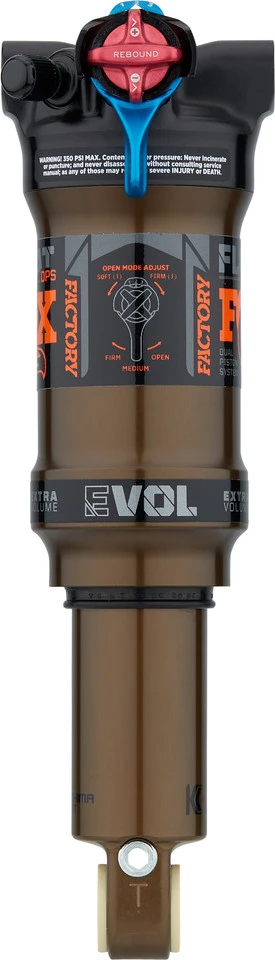 Spezifikationen:Einsatzbereich:Cross CountryProduktlinie:FactoryFederung:LuftEinbaulängen x Hub:165 x 40 mm, 165 x 42,5 mm, 165 x 45 mmDämpferaufnahme:TrunnionTechnische Daten:Dämpfungssystem:DPS (Dual Piston System)Material Buchsen:KunststoffMaterial Gehäuse:AluminiumMaterial Schaft:AluminiumLuftkammergröße:EVOL, SVEinstelloptionen:Druckstufe:3-Positionen-Hebel (Open / Medium / Firm), Open Mode Adjust (3 Stufen)Zugstufe:JaRemote:NeinFreigaben:Luftdruck max.:350 psi (24,1 bar)Features:Factory-Serie mit Kashima-Beschichtung für minimierte Reibung und optimiertes AnsprechverhaltenEVOL Luftkammer für sensibles Verhalten bei kleinen Schlägenmit Standard Volume (SV) EyeletTechnologien:Kashima Coat