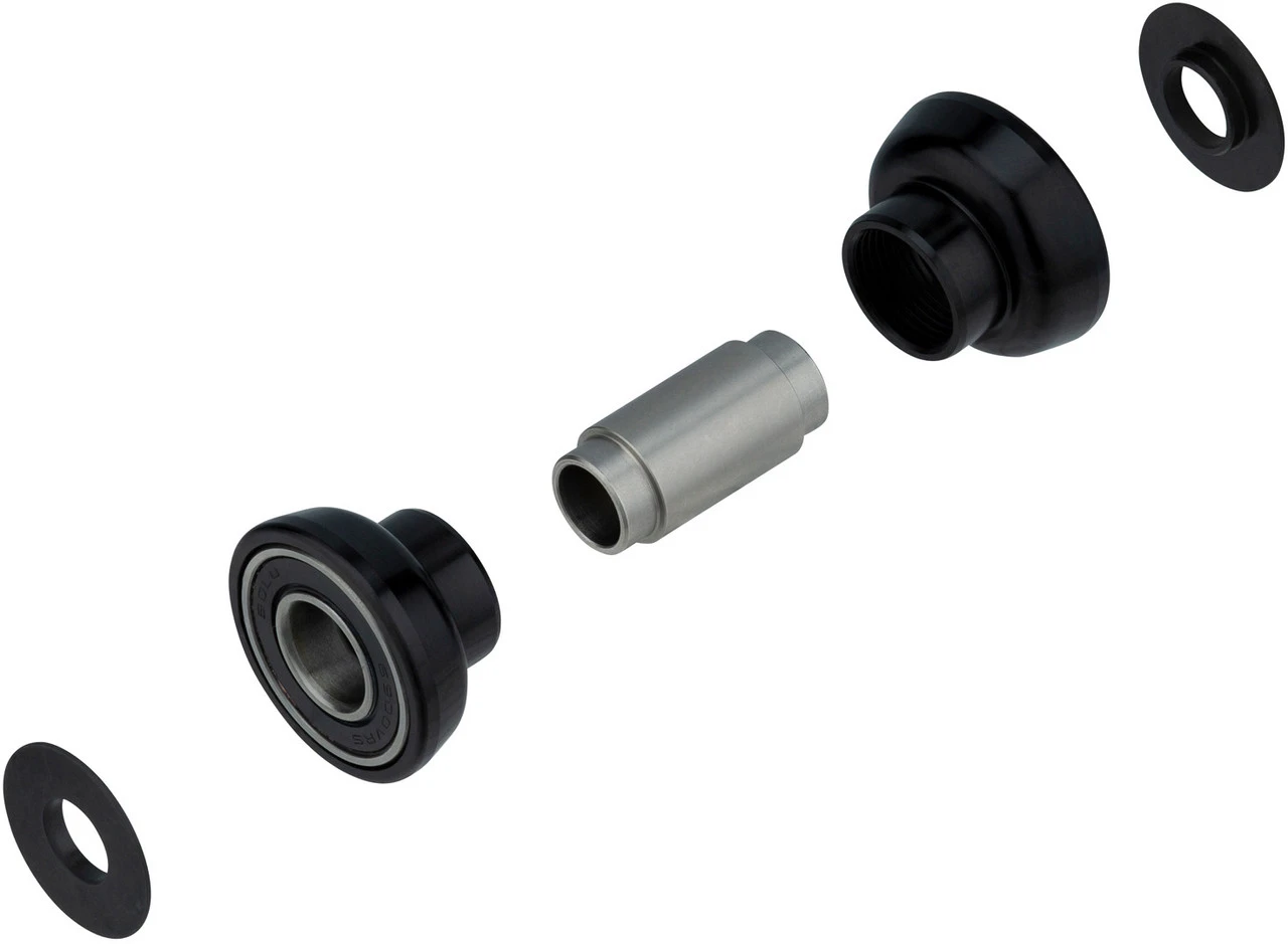 Das 7-teilige Einbaubuchsenset 8 mm mit Kugellager für die Montage von Fox Racing Shox Dämpfern.