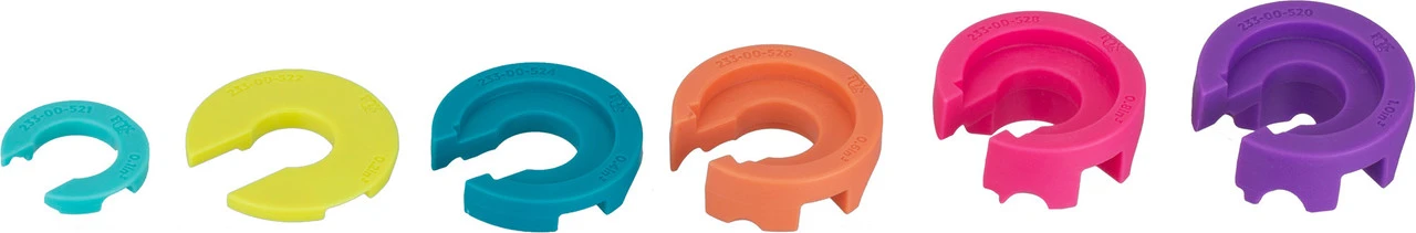 Das Volume Tuning Kit von Fox Racing Shox für Float X Luftdämpfer ab Modell 2022 beinhaltet sechs verschiedenfarbige Volumenspacer in unterschiedlichen Größen zwischen 0,1 und 1 mm. Mit diesen kannst Du die Federkennlinie Deines Dämpfers anpassen.