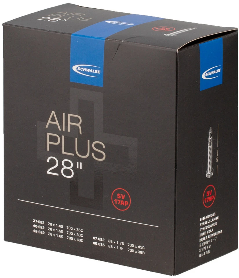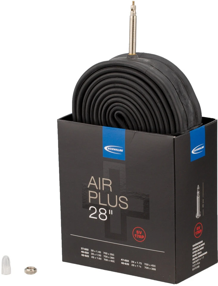 Der Air Plus Schlauch 17 von Schwalbe zeichnet sich durch besondere Pannensicherheit und Lufthaltigkeit aus und ist damit auch für E-Bikes und Cargo-Bikes mit 28″ Laufrädern geeignet. Möglich ist das durch eine 70 % höhere Wandstärke und einen hohen Anteil aus reinem Butylkautschuk.