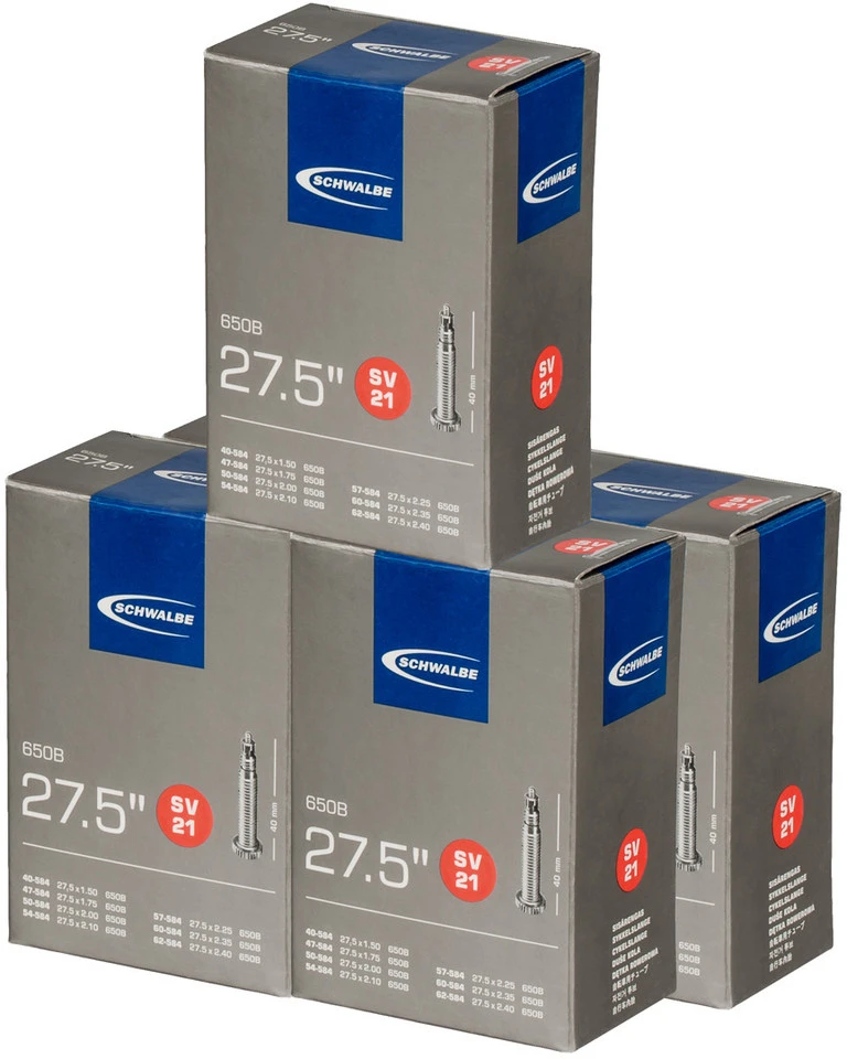Spezifikationen:Einsatzbereich:All MountainETRTO:40-584 bis 62-584Reifendimension:27,5 x 1,50″ bis 27,5 x 2,40″Schlauchmaterial:ButylVentilart:SV 40 mmPassende Dimensionen (ETRTO):27,5 x 1,50 (40-584)27,5 x 1,75 (47-584)27,5 x 2,0 (50-584)27,5 x 2,10 (54-584)27,5 x 2,25 (57-584)27,5 x 2,35 (60-584)27,5 x 2,40 (62-584)Ausführungen:27,5×1,5-2,4 SV 40 mm