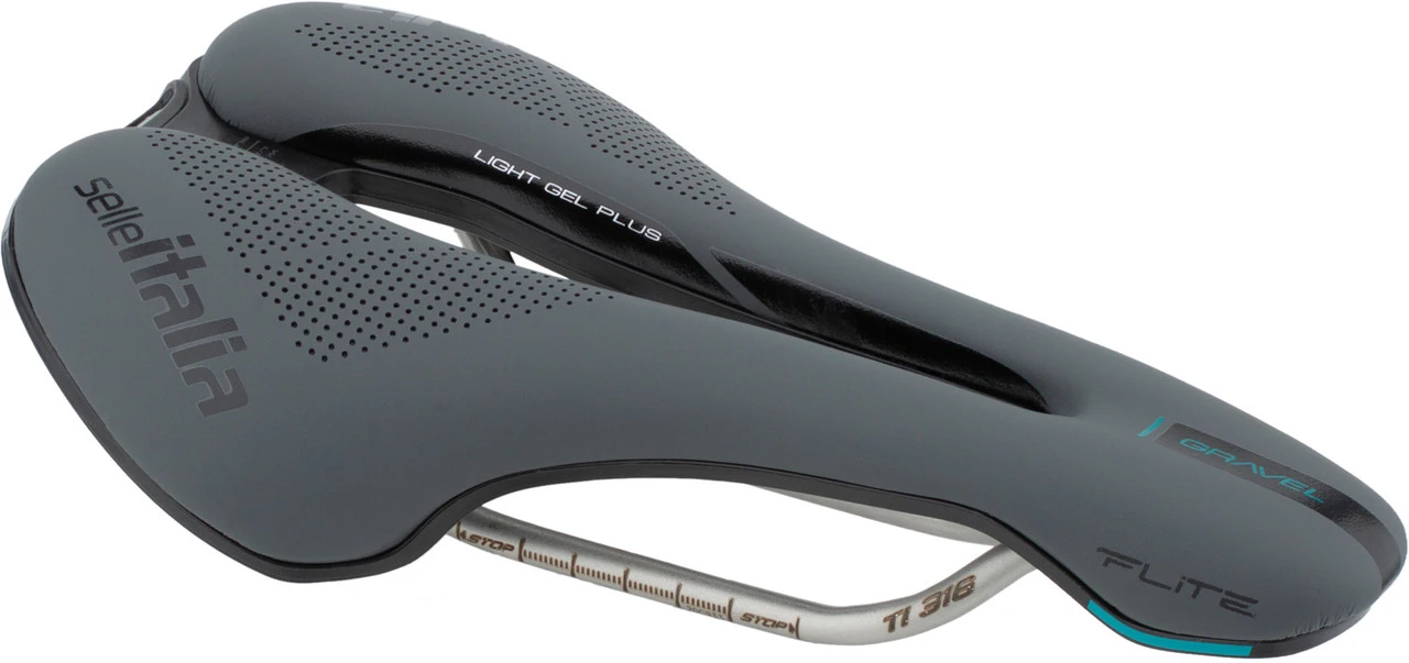 Der Flite Boost mit Titanstreben ist ein Gravel-Rennsattel von Selle Italia und verfĂĽgt ĂĽber eine Superflow-Aussparung zur Druckentlastung.