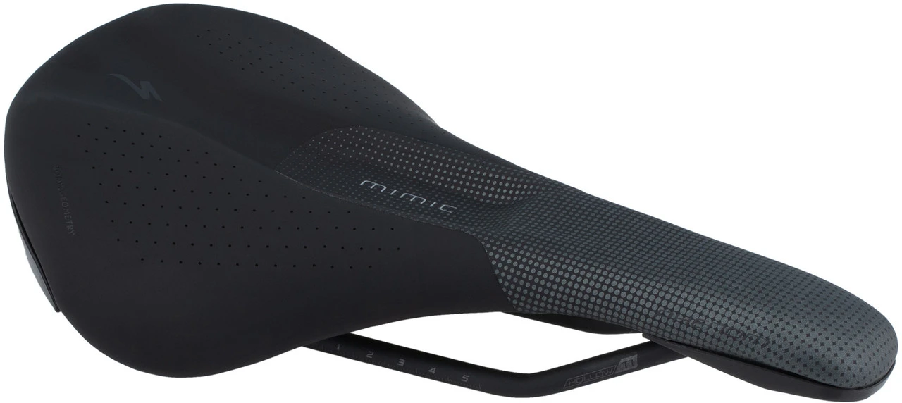 MIMIC leitet sich von dem Wort „Biomimicry“ ab – der an biologischen Vorbildern orientierten Herstellung von Materialien und Strukturen – und bezeichnet den speziellen Aufbau von Specialized Damen-Sätteln. Dabei werden verschiedene festere und weichere Schaumstoff-Schichten sowie eine dünne TPU-Platte so eingesetzt, dass durch den beim Sitzen entstehenden Druck ein Gegendruck erzeugt wird. Auf diese Weise wird das bei Frauen sehr komplex aufgebaute Weichgewebe genau an den richtigen Stellen unterstützt und die Durchblutung sichergestellt. Lastspitzen, Schwellungen und Schmerzen wird vorgebeugt, was Komfort, Ausdauer und Leistungsfähigkeit deutlich erhöht.