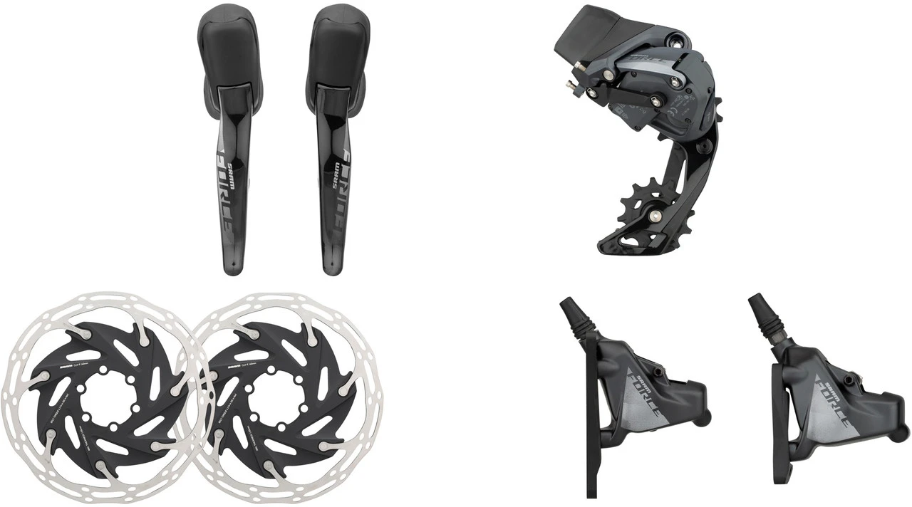 Lieferumfang:1 Paar Schalt-/Bremsgriffe SRAM Force eTap AXS HRD FM1 Paar Scheibenbremsen SRAM Force AXS (FlatMount), montagefertig befüllt und entlüftetinkl. Scheibenbremsadapter SRAM 160mm1 x Schaltwerk SRAM Force eTap AXS mit Akku2 x Bremsscheibe SRAM Centerline CLX Ti, 6-Loch, 2-teilig 160 mm1 x Akkuladegerät1 x Kabel