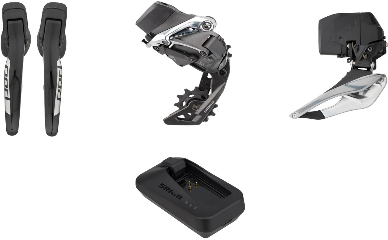 Lieferumfang:1 Paar Schalt-/Bremsgriffe SRAM Red eTap AXS Road1 x Umwerfer SRAM eTap AXS mit Akku1 x Schaltwerk SRAM eTap AXS mit Akku1 x Akkuladegerät1 x Kabel