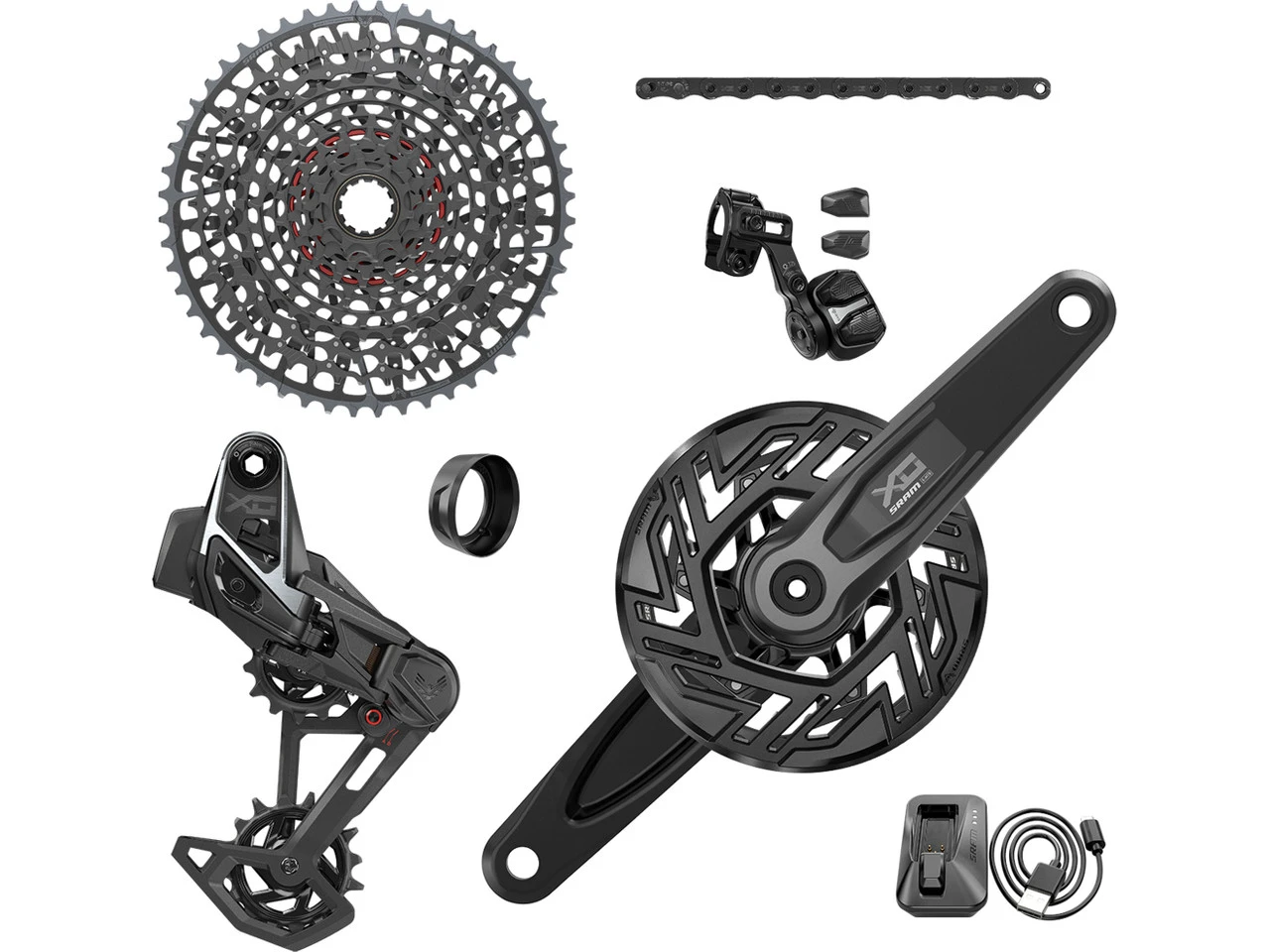Lieferumfang:Komplettgruppe SRAM X0 Eagle Transmission AXS 1×12-fach E-MTB für Brose, bestehend aus:
