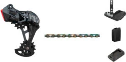 Dieses SRAM Upgrade-Kit der Serie XX1 Eagle fĂĽr 1×12-fach-Antriebe bietet Deinem Mountainbike im Cross-Country- und All-Mountain-Einsatz dank Carbonteilen eine leichte BasisausrĂĽstung fĂĽr elektronisches Schalten. Es setzt sich zusammen aus einem XX1 Eagle AXS Schaltwerk mit Akku, passendem Eagle AXS Controller Schaltgriff, einer PC XX1 Eagle Kette und einem Akku-Ladegerät.