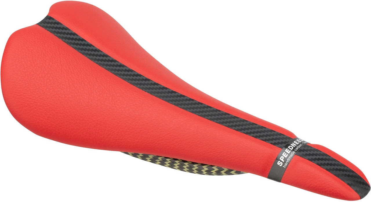 Die nächsten 20 Jahre werden nun mit dem Speedneedle 20TWENTY eingeläutet. Er basiert auf dem Speedneedle Marathon. Auch den bewährten CFK-Aramidfasermix-Streben ist man treu geblieben. Sattelschale und Polsterung haben sich jedoch geändert. Statt zwei Querstreifen zieren den Sattel nun zwei Längsstreifen.